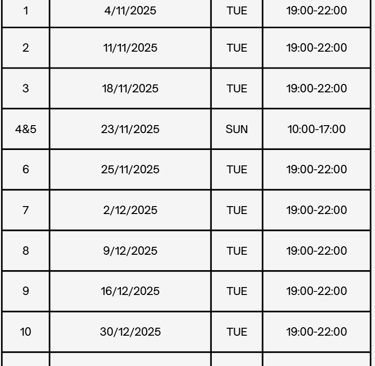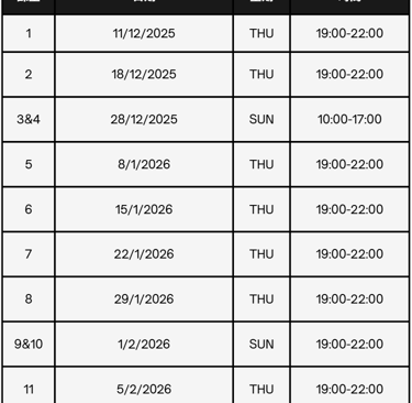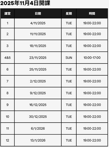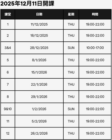詳細上課日期請見右表或向我們查詢