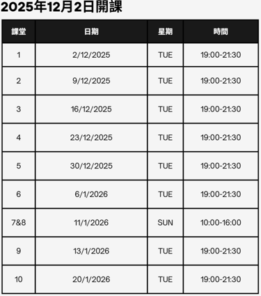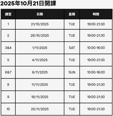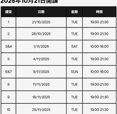 上課時間 - 我們建議同學可在課堂開始前15分鐘抵達教室